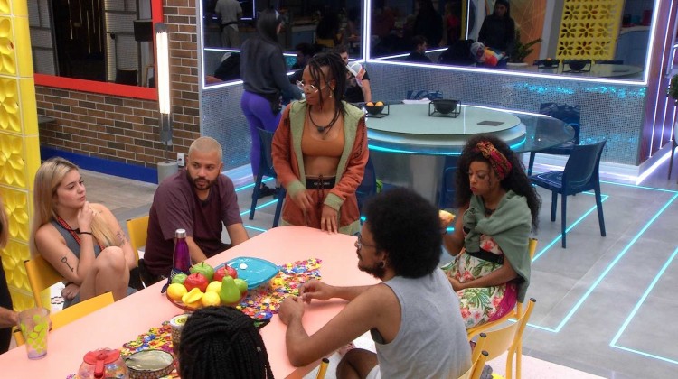 João Luiz e Projota explicam as contas para os outros brothers. O professor de Geografia sugere que Thaís e Viih Tube não deem nada para não ficarem zeradas.
