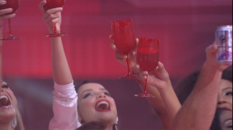 Os brothers curtem, dançam e cantam muito durante a Festa Americanas. No palco, Thiaguinho anima os participantes, que aproveitam a música "Pé na Areia, de Diogo Nogueira, para fazer um brinde. "Pé na areia, a caipirinha, água de coco, a cervejinha. Pé na areia, água de coco, beira do mar", cantam os brothers.