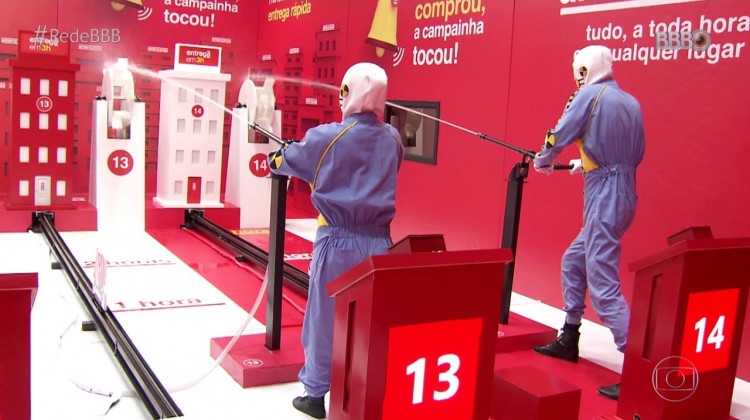 "Vocês deverão realizar uma entrega rápida das Americanas no menor tempo possível. Para isso, cada jogador terá sua própria moto.Para movimenta-la vocês precisarão usar uma pistola de água, que precisa acertar uma roda. Quando a água parar de sair da pistola, você deverá encontrar a chave certa, abrir o cadeado e apertar o botão para recarregar.