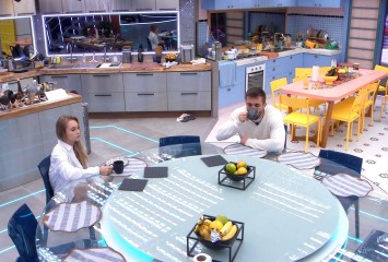 Carla Diaz e Arthur tomam café da manhã na cozinha do Vip do BBB21. O casal conversa sobre a Fes...